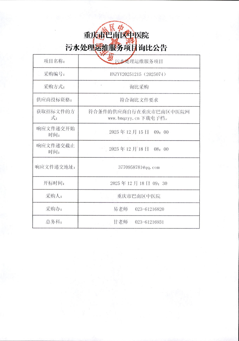 污水处理运维服务项目询比公告