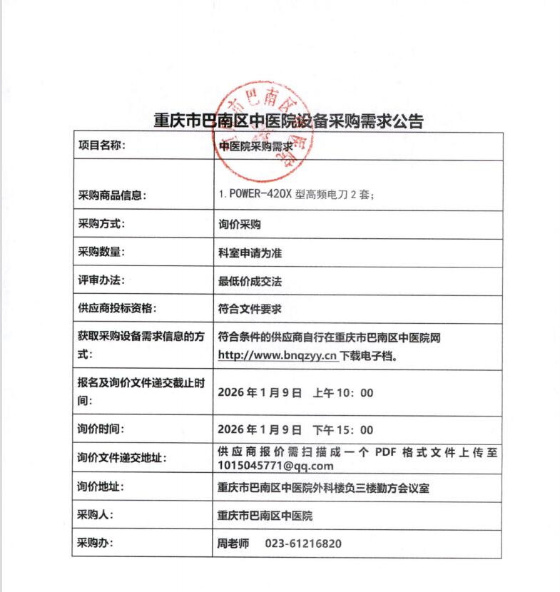 设备采购需求公告