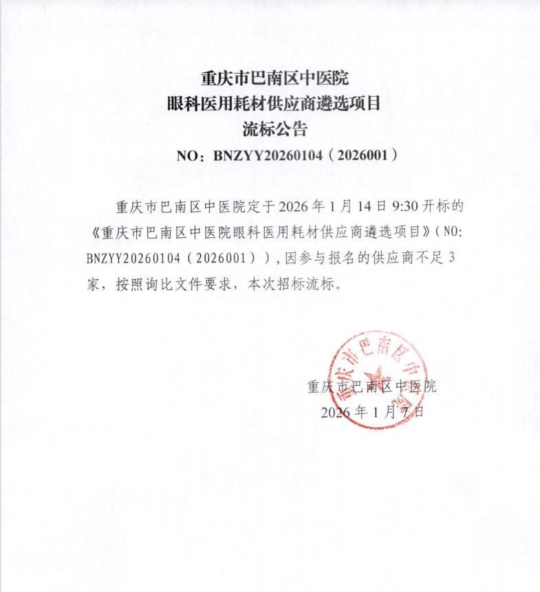 眼科医用耗材供应商遴选项目流标公告