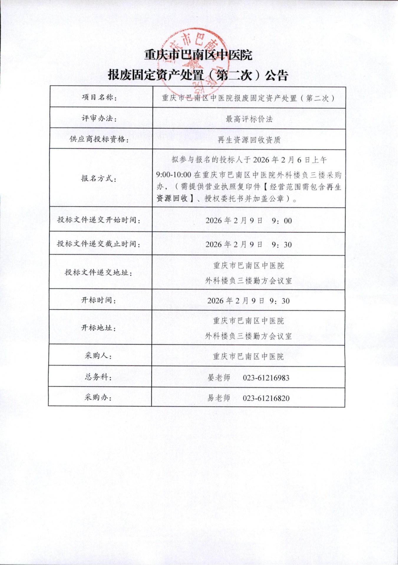 报废固定资产处置(第二次)公告