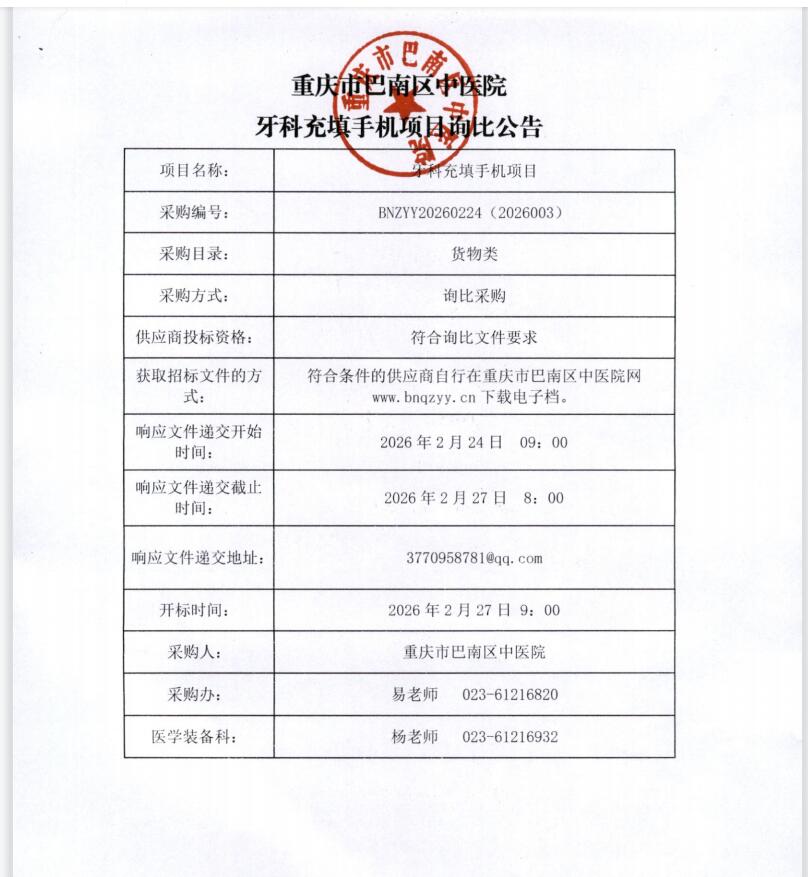 牙科充填手机项目询比公告