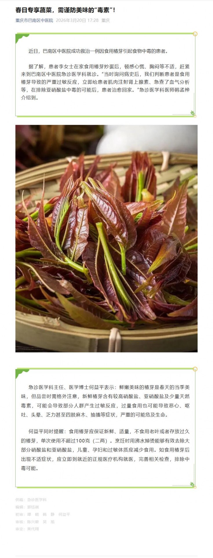 春日专享蔬菜,需谨防美味的“毒素”!