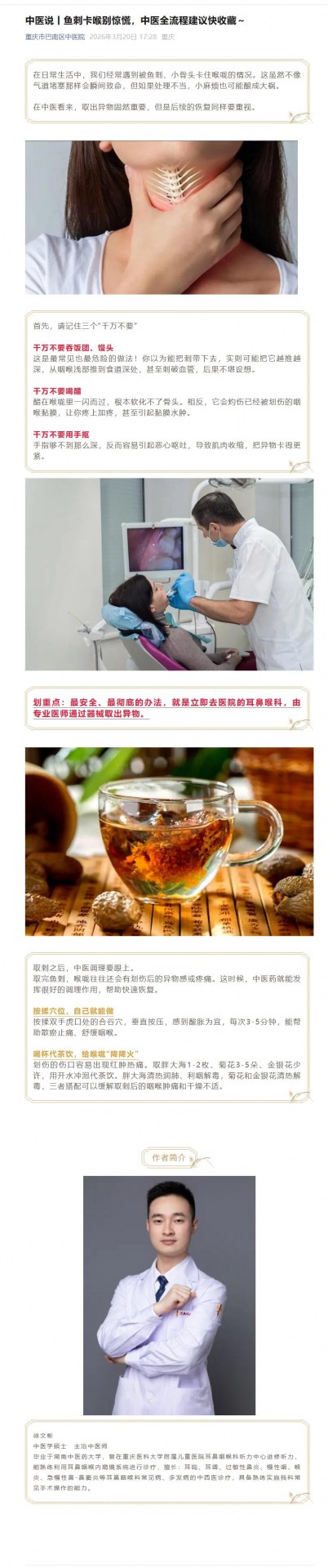 中医说丨鱼刺卡喉别惊慌,中医全流程建议快收藏~