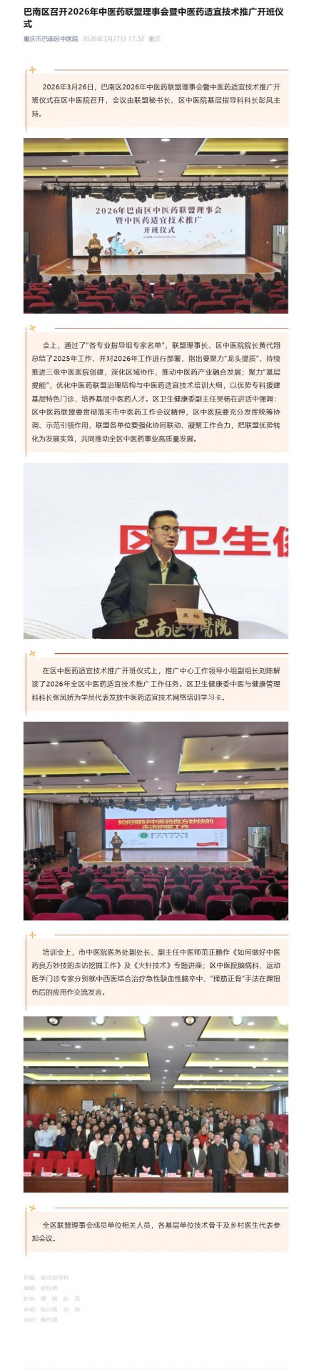 巴南区召开2026年中医药联盟理事会暨中医药适宜技术推广开班仪式