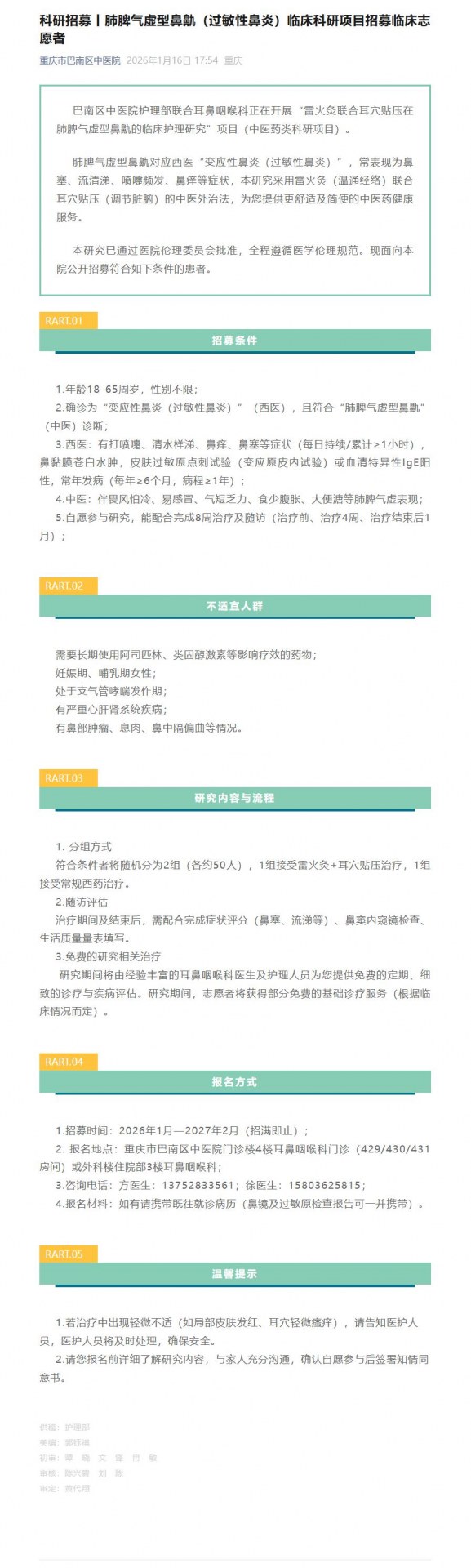 科研招募丨肺脾气虚型鼻鼽(过敏性鼻炎)临床科研项目招募临床志愿者