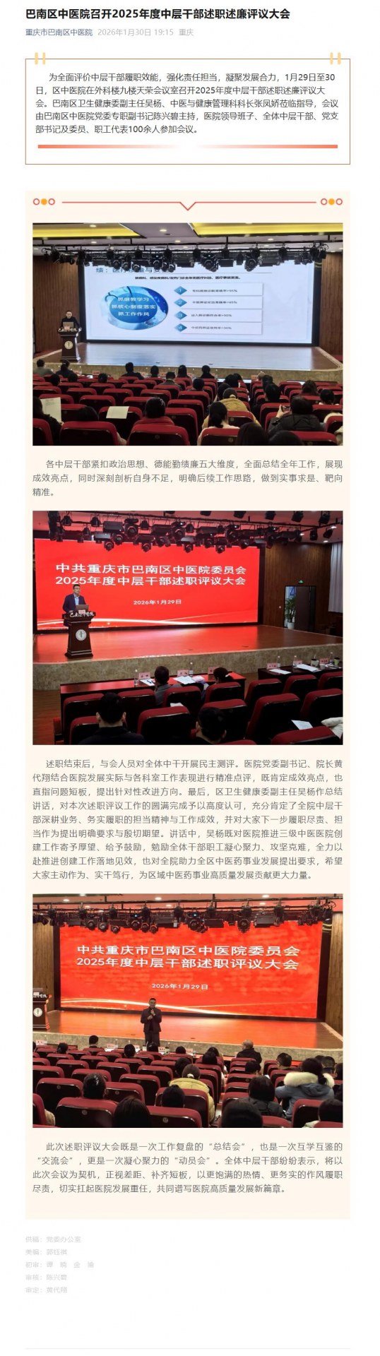 巴南区中医院召开2025年度中层干部述职述廉评议大会
