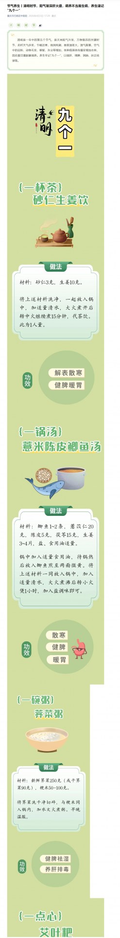 节气养生丨清明时节,阳气渐深肝火盛,调养不当易生病,养生谨记“九个一”