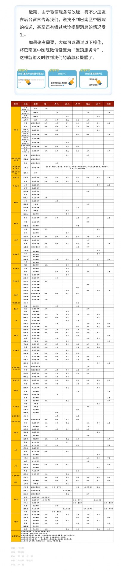 重庆市巴南区中医院门诊出诊一览表(2025年9月8日-9月14日)