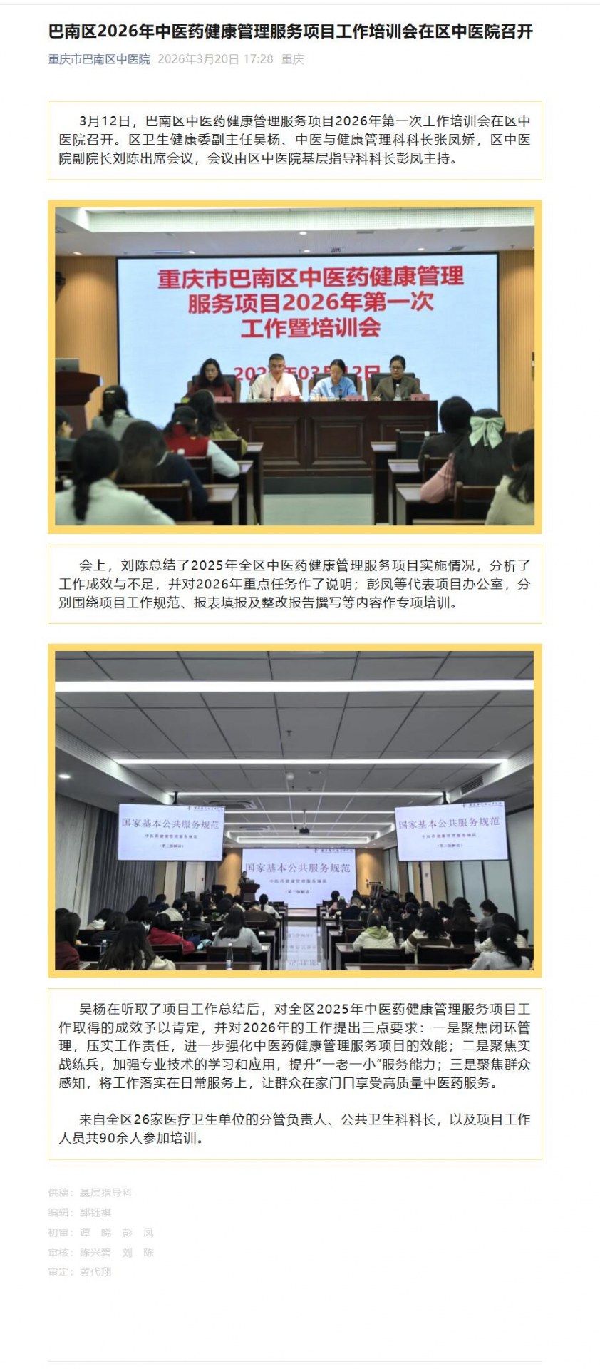 巴南区2026年中医药健康管理服务项目工作培训会在区中医院召开